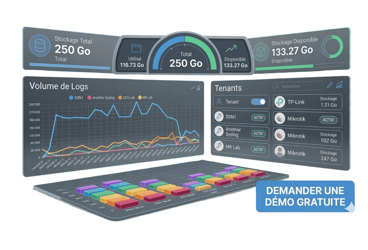 Collectez, stockez et analysez les logs de vos équipements réseau (Mikrotik, TP-Link, Ubiquiti…) de manière sécurisée. Transformez vos données réseau en insights exploitables.
